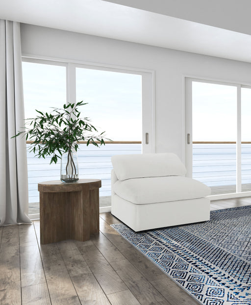 Create the perfect configuration for your modular sectional with a modern armless chair. It features neutral water-resistant boucle upholstery for ...
