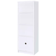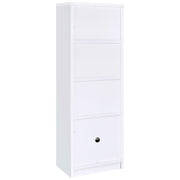 Put finishing touches on a charming media center in your living room with this tower bookcase. Perfect to flank your TV stand, it adds easy storage and display space. Its mix of cabinet and open shelving is versatile and stylish, with three shelves, two of them adjustable, on top of a one-door cabinet with one adjustable shelf. Trim details add subtle character and freshness to the overall look. A neutral finish complements surrounding decor and offers stylish appeal in your living room.