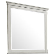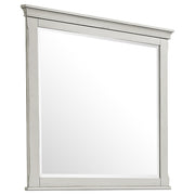 Evoking a casual, rustic beachside bungalow, this four-piece bedroom set comes complete with a platform bed, single nightstand, and a dresser and mirror combo. The panel style design features a shutter style cottage aesthetic in the headboard, footboard, and dresser cabinets. This entire set also offers a wire-brushed finish that is subtle and refined. Modern and convenient details include a nightstand with a convenient pull-out service tray and cord access for charging handheld devices, as well as felt-lined top drawers and soft-closing drawer glides. Across the set, each drawer is adorned with a dark gunmetal hardware.