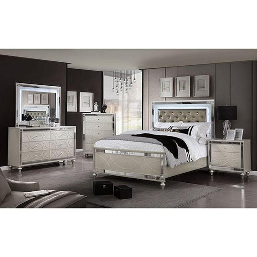 This beautiful bedroom set is the perfect way to illuminate any space. A strip of white LED light is hidden behind the headboard and footboard pane...