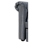 An elegant take on a space-saving structure, this daybed and trundle set is a sophisticated alternative to traditional designs. This unique set draws inspiration from classic sofa designs with its rolled arms, button-tufted back and nailhead trim. The solid wood framework ensures durability while wrapped tightly with warm linen-like fabric in four colors, or in brown leatherette.