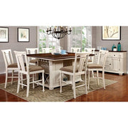 SABRINA Off White/Cherry Ctr.Ht. Chair, Cherry & White (2/CTN), 20"W X 22"D X 41 1/2"H, 48.4lbs. The cottage style combined with the beautiful two-toned finish on this counter-height chair adds a cozy look to any dining space. With a wide array of functional features such as the wine holder and multi-open storage shelves, this chair can be paire d with the matching table to give any outdated dining space a light makeover. Available in 2 finishes. Features: Country Style Storage Base Design Padded Fabric Seat Cushions Solid Wood, Wood Veneer, Others Available in 2 Finishes Cherry & White