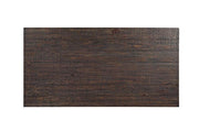 LEONIDAS Dining Table, 76"L X 39"W X 3"H, 128.76lbs. This is a striking dining table for those looking for unique tone finishes. This antique black, upon closer inspection, reveals beautiful grain visible on the plank style table top. The trestle base has intricately carved designs that match the subtle curves of the chairs, along with their contoured back rest that wraps around the user. Made of pine and rubber wood, this solid ensemble redefines the dining hall color palette.