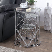 This great accent piece is super space efficient. It's a nesting design that combines three tables that can be easily seperated and made use of per their individual sizes.