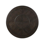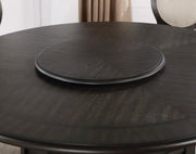 Add luxury to your decor with this visually stunning dining ensemble. Wooden frames are finished in dark espresso while the chairs feature contrasting bright, ivory fabric. For convenience, there's a lazy susan on the round table top and an open bottom shelf and large drawer below for extra storage. The chairs complement perfectly, with slightly curved round backs and padded seats upholstered in 100% polyester.