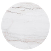 This round end table is the perfect complement to any living room setup. Its genuine white marble top, with delicate veining, brings an element of sophistication to your space. The engineered wood frame in a charcoal finish features ribbed detailing that adds texture and depth, while the brushed gold metal base ensures a luxurious foundation. This versatile side table seamlessly combines modern materials and a stylish design to elevate your home.