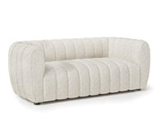For the daring ones, the effective blend of retro vibes and contemporary elements make this piece a standout selection. Straight lines dominate the design here with chic vertical channel tufting that covers the single seat and back. Arms are stuffed and the cushioning wraps over the structure with the whole piece upholstered in smooth boucle fabric you can't find anywhere else. This living room collection aims to make comfort the most important thing.