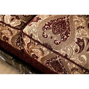 MATTEO Loveseat, 72"L X 37"W X 44"H, 150lbs. This is American-made Victorian elegance defined. Ornate wood construction hosts a combination of burgundy chenille and antique paisley fabrics to boast a design befitting of royalty! It's the couch guaranteed to be a centerpiece of conversation.