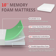 Forsythia 10" Queen Green Tea Gel Memory Foam