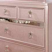Resting atop elegant bun feet, this glamorous bedroom set brings a touch of stylish appeal that instantly brightens any space! Sophisticated button tufts adorn the leatherette upholstery of the headboard, which brings more attention to its thick and chic frame. Mirrored accent panels bring extra glitz to the design and make this a stunning set to admire!